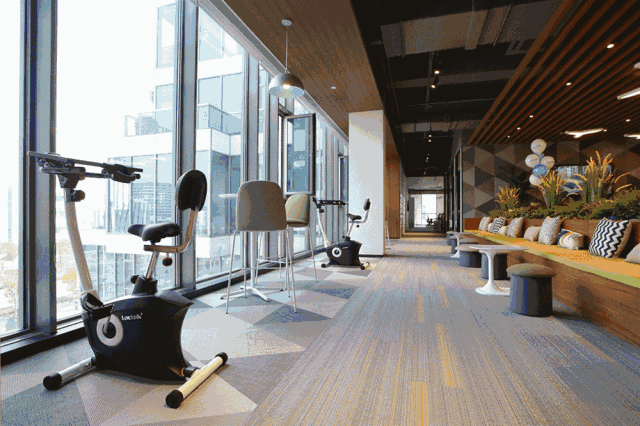 咖啡吧、休息区、运动区等休闲空间,为办公体验升级加分。休息时间,喝杯咖啡聊聊天吧!~腰酸背痛,不妨来一场痛快淋漓的运动?!如此生活化的办公环境,人人都能做到健康和工作两不误。